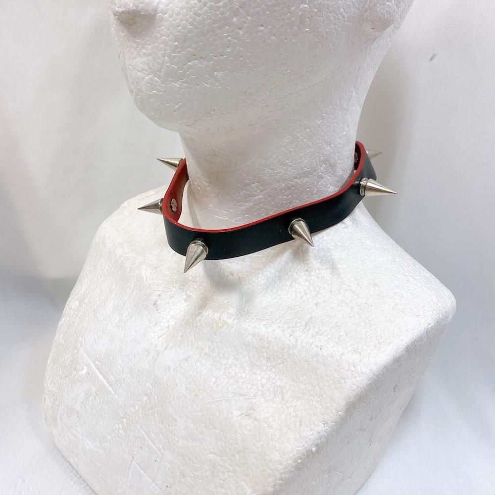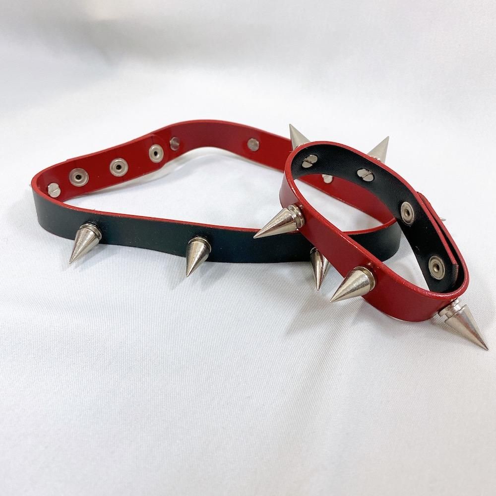 パンク感満載のトゲが付いたチョーカーとブレスレットのセットです。